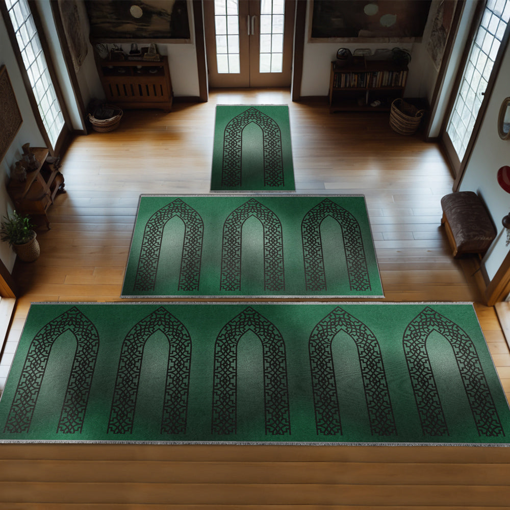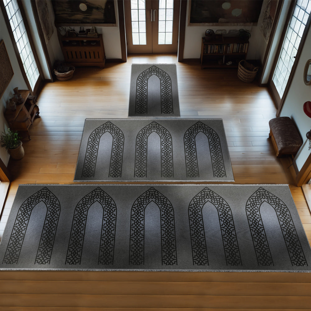 Modern Müslüman Yaşamının zarafetini yansıtan bu özel yumuşak seccade, geleneksel İslami motifleri çağdaş bir tasarımla buluşturmak için özenle tasarlandı.