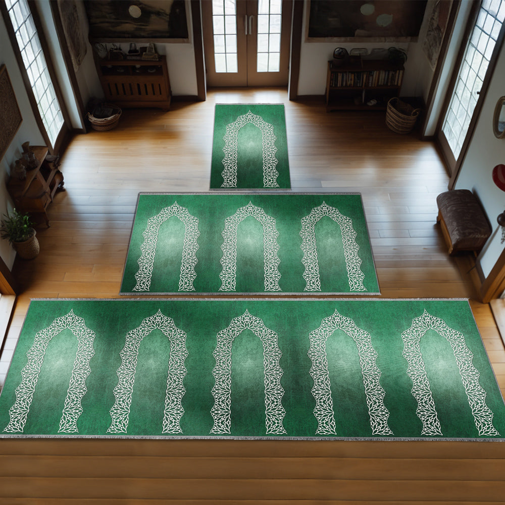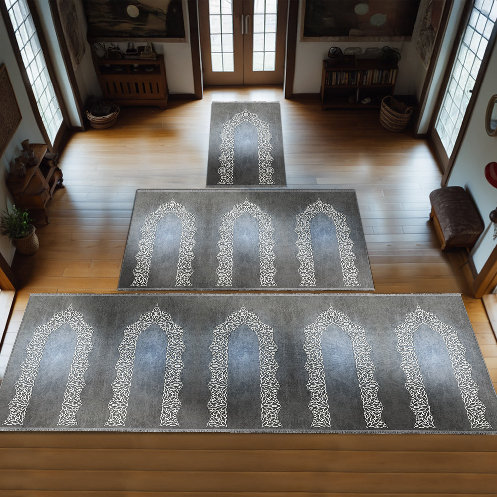 Modern Müslüman Yaşamının zarafetini yansıtan bu özel yumuşak seccade, geleneksel İslami motifleri çağdaş bir tasarımla buluşturmak için özenle tasarlandı.
