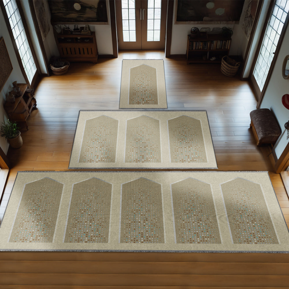 Modern Müslüman Yaşamının zarafetini yansıtan bu özel yumuşak seccade, geleneksel İslami motifleri çağdaş bir tasarımla buluşturmak için özenle tasarlandı.