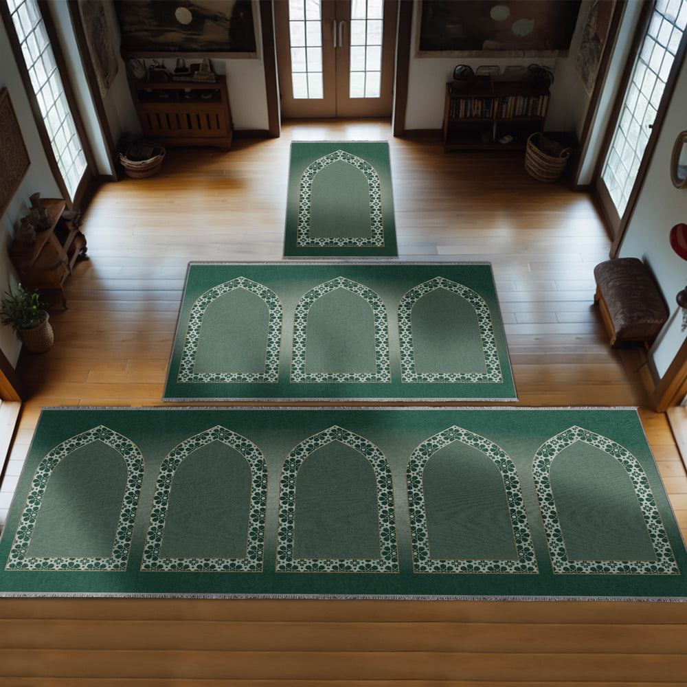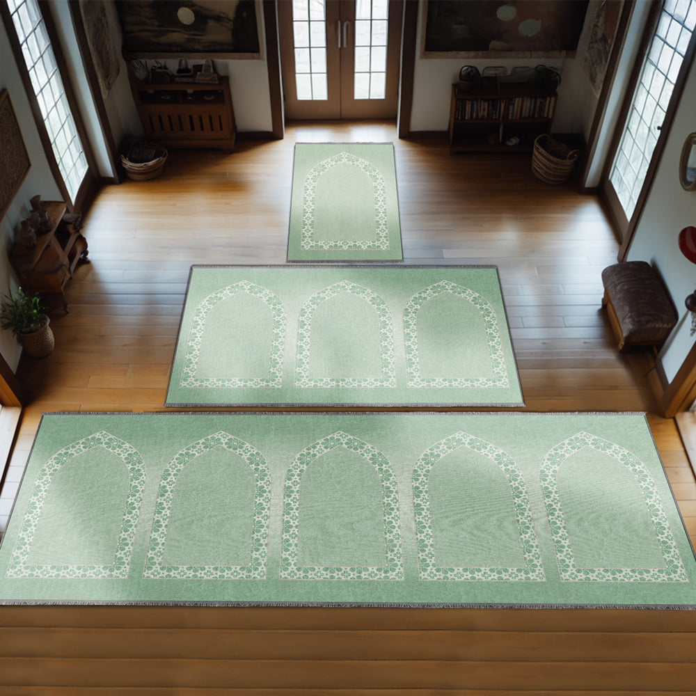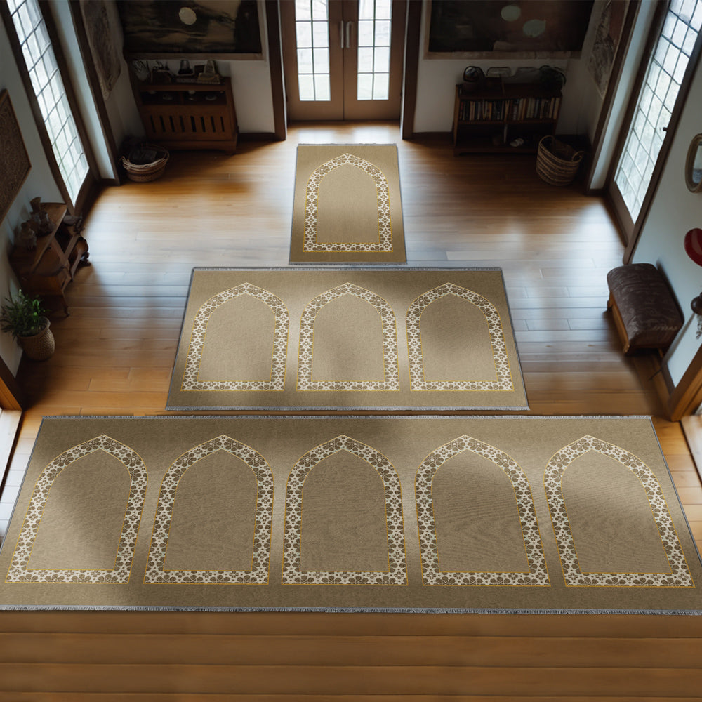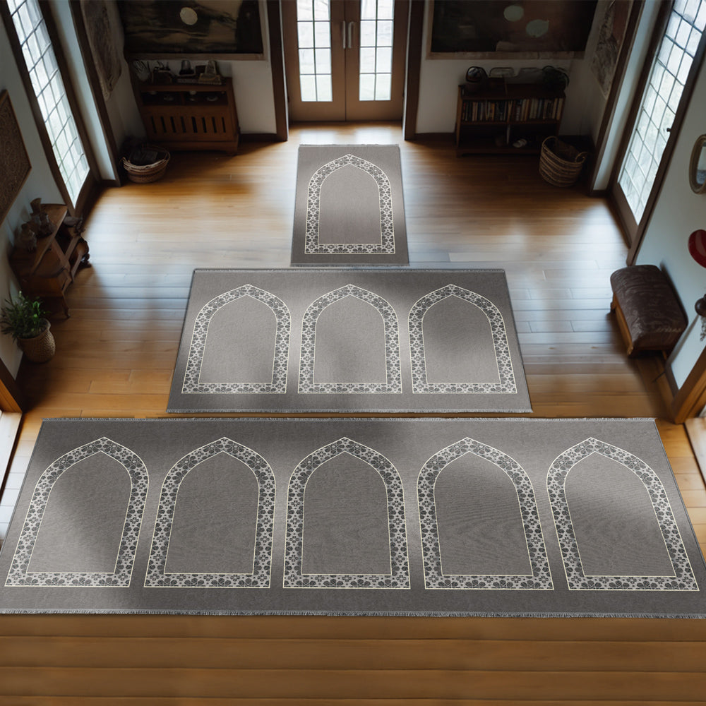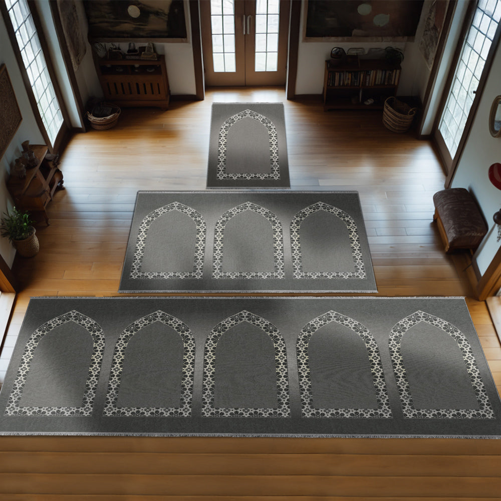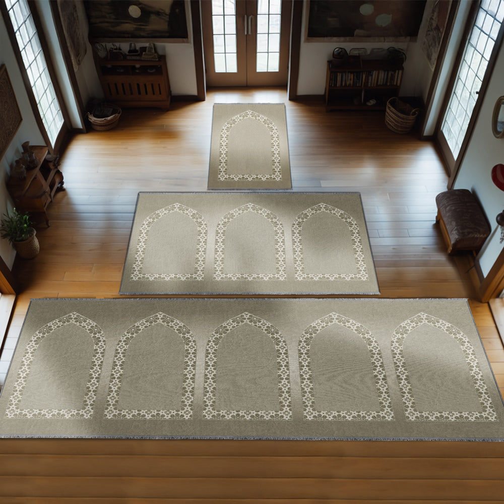 Modern Müslüman Yaşamının zarafetini yansıtan bu özel yumuşak seccade, geleneksel İslami motifleri çağdaş bir tasarımla buluşturmak için özenle tasarlandı.