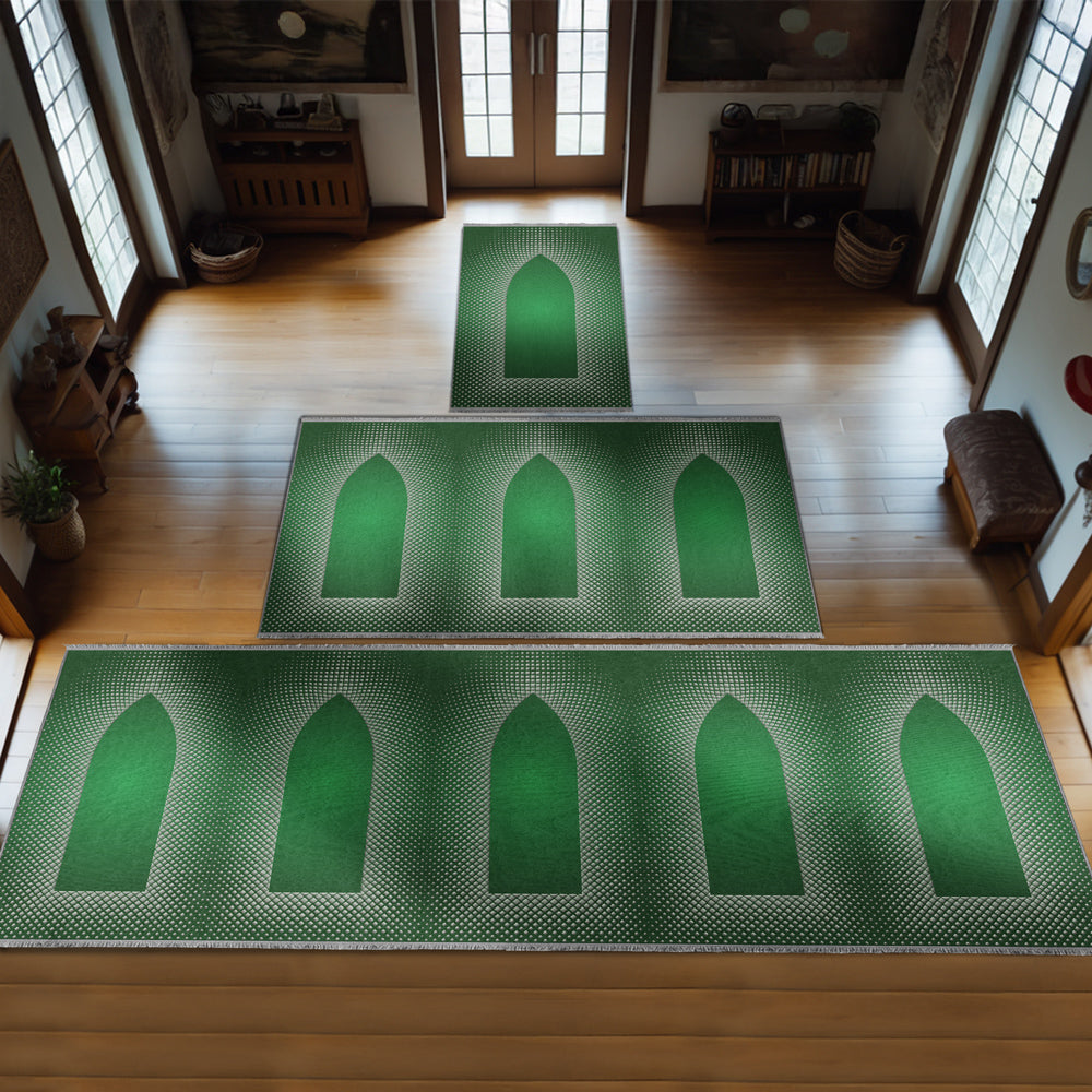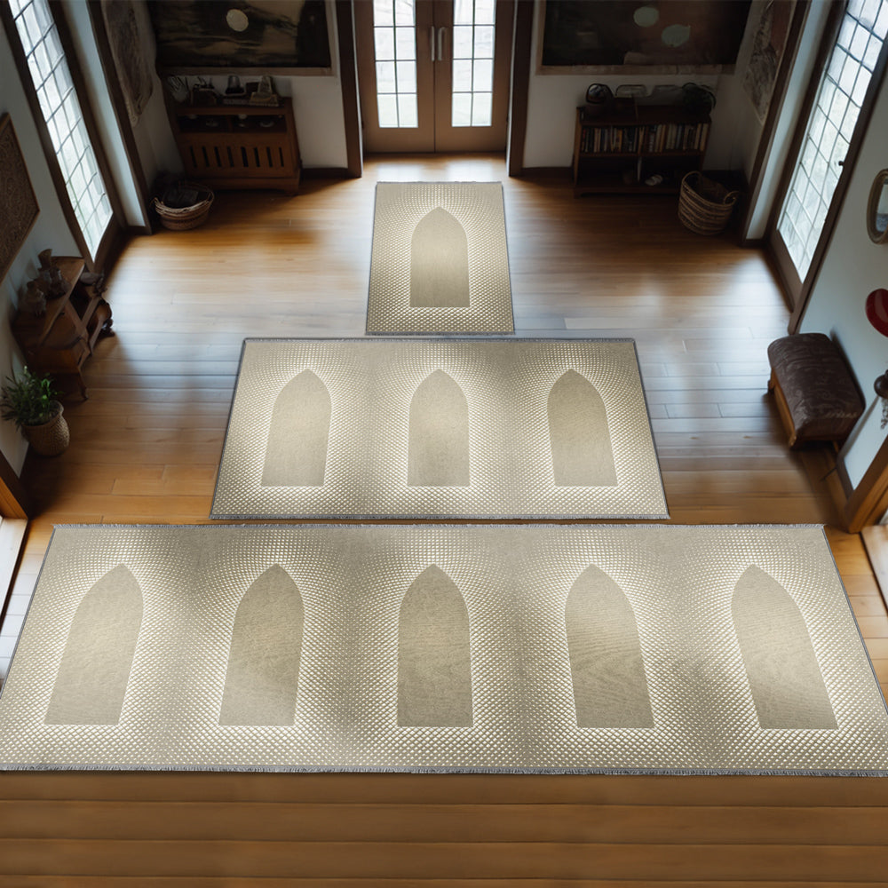 Modern Müslüman Yaşamının zarafetini yansıtan bu özel yumuşak seccade, geleneksel İslami motifleri çağdaş bir tasarımla buluşturmak için özenle tasarlandı.