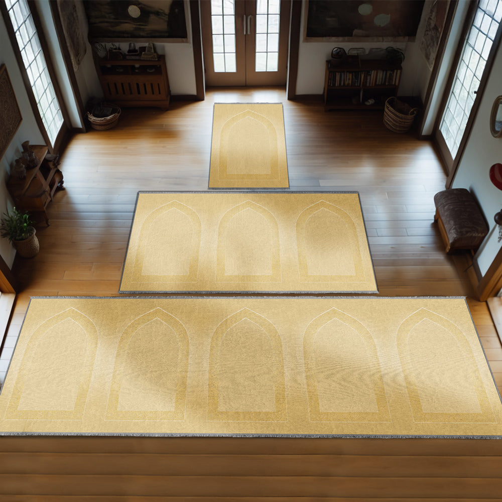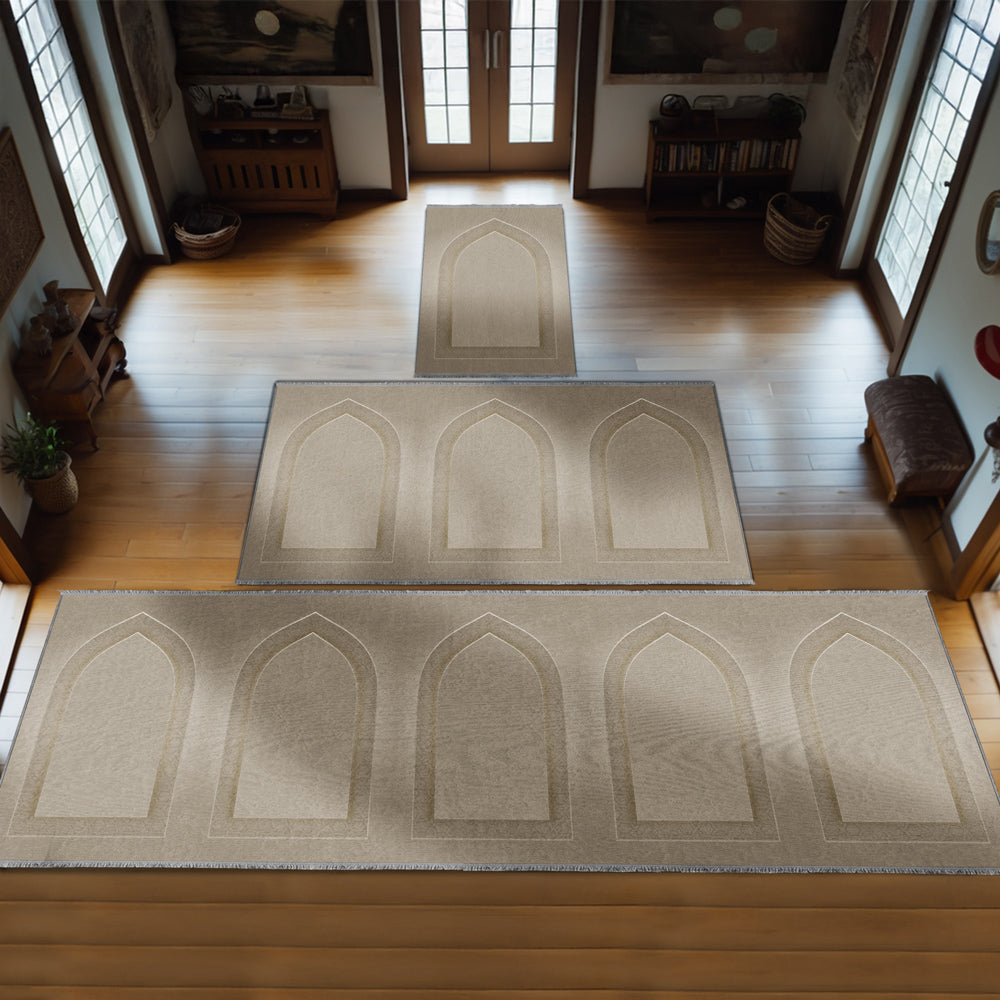 Modern Müslüman Yaşamının zarafetini yansıtan bu özel yumuşak seccade, geleneksel İslami motifleri çağdaş bir tasarımla buluşturmak için özenle tasarlandı.