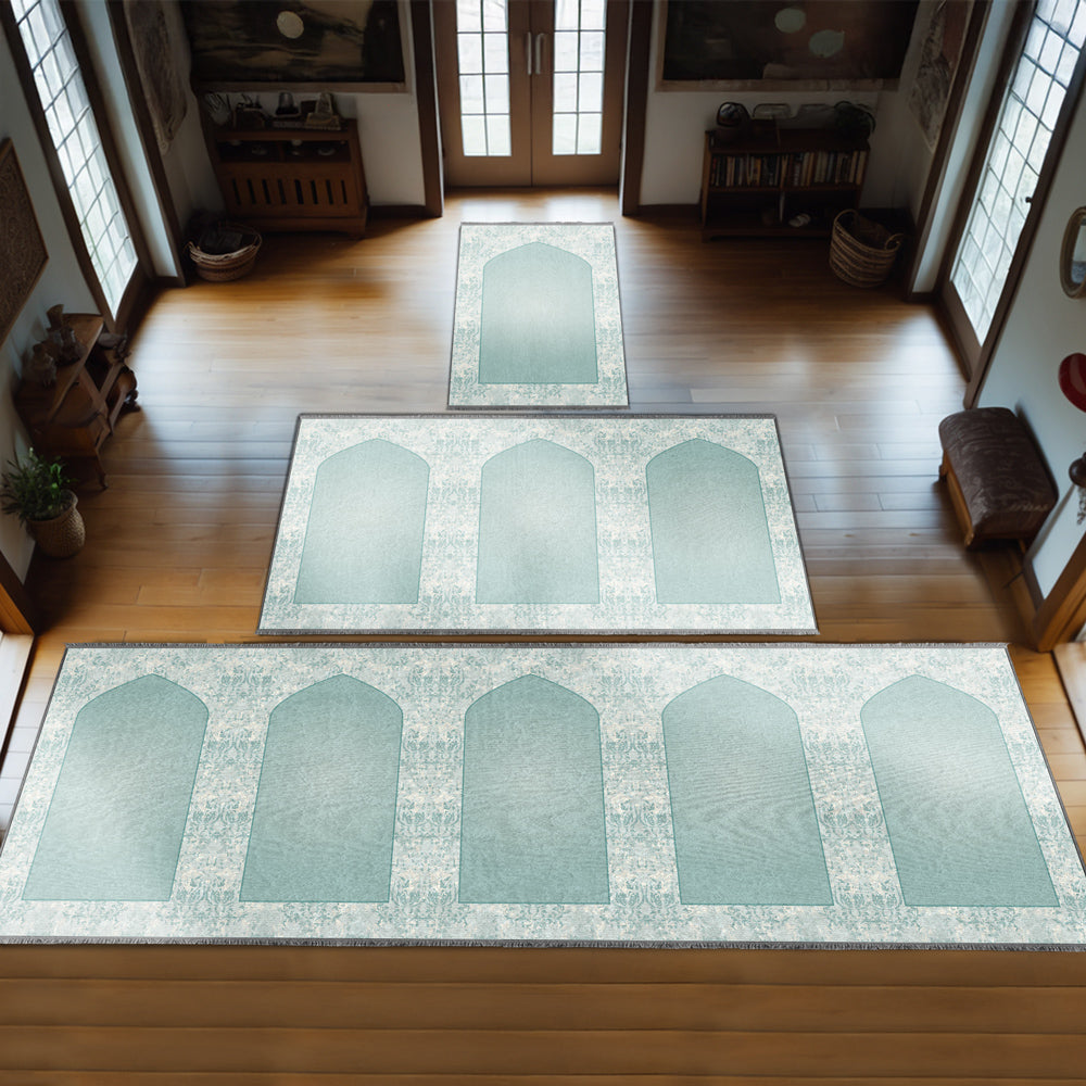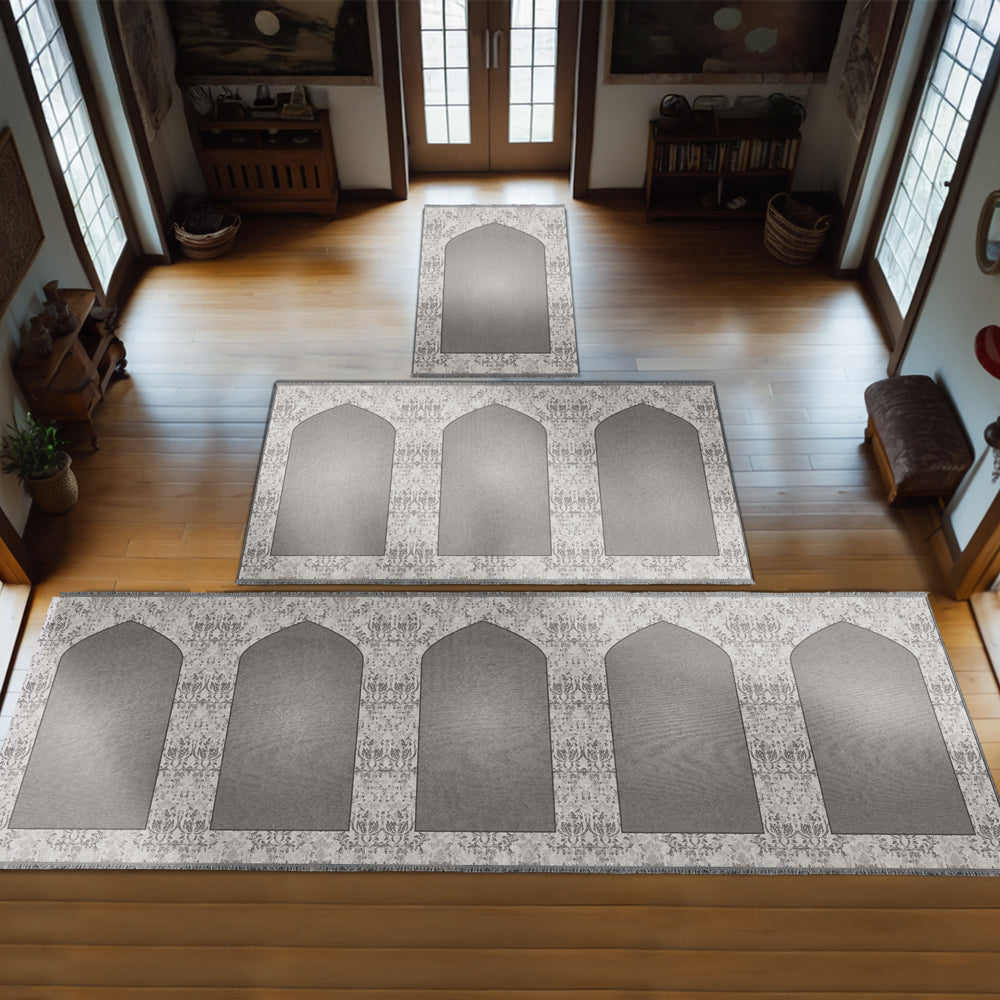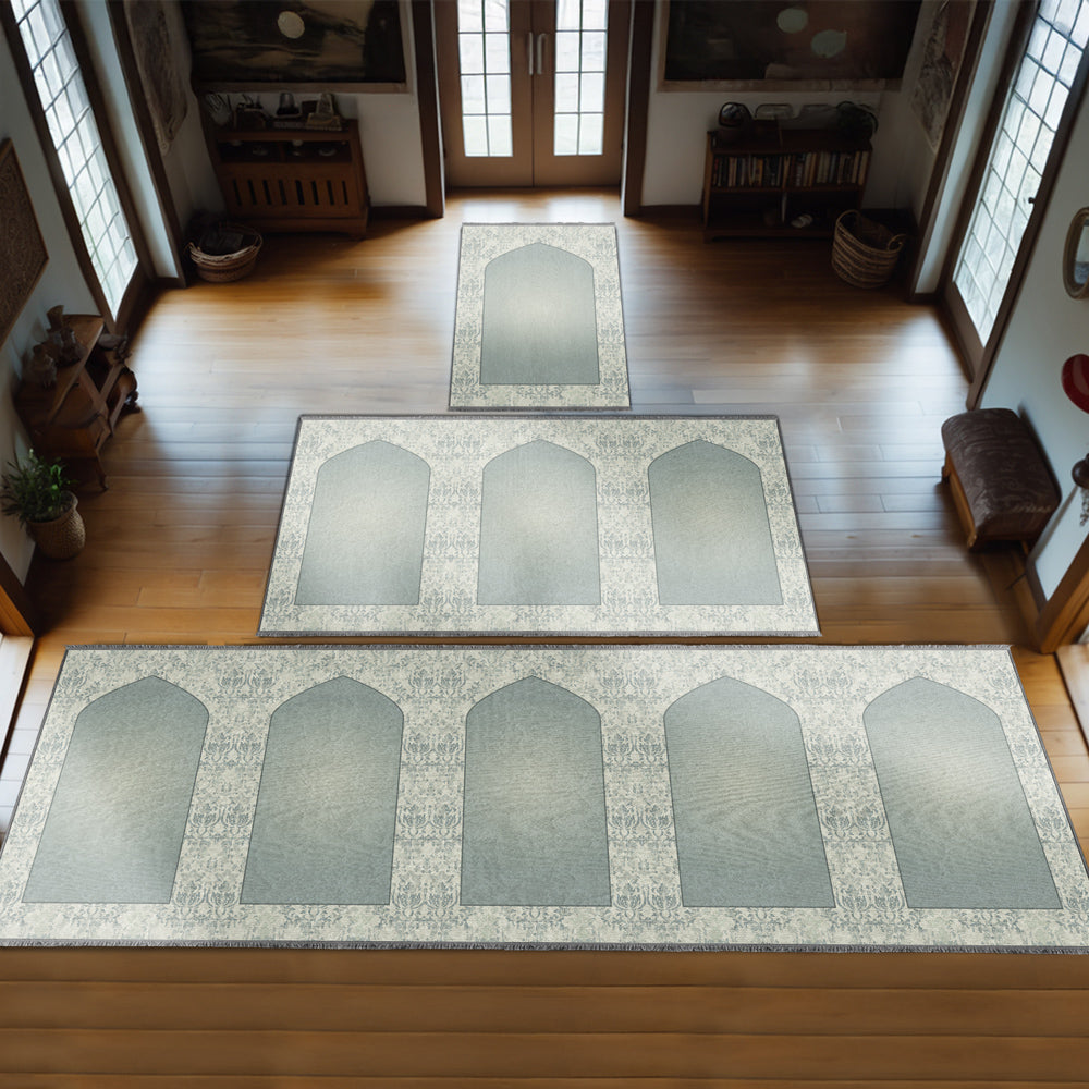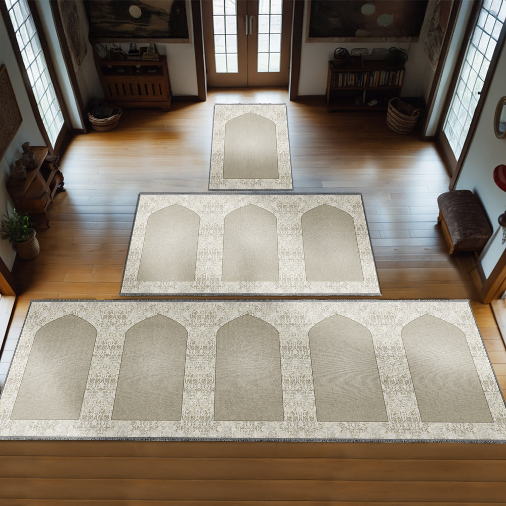 Modern Müslüman Yaşamının zarafetini yansıtan bu özel yumuşak seccade, geleneksel İslami motifleri çağdaş bir tasarımla buluşturmak için özenle tasarlandı.