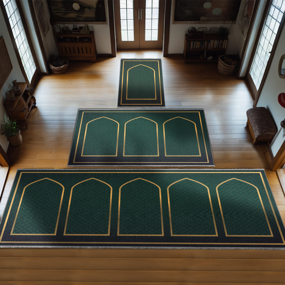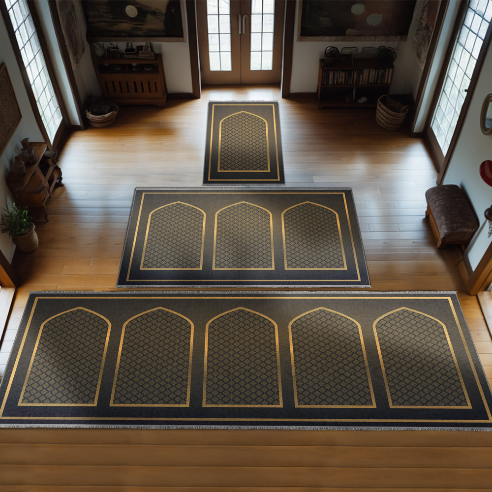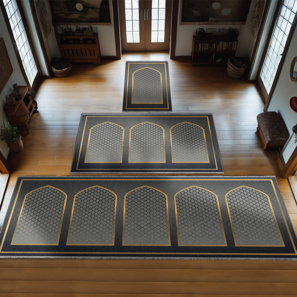 Modern Müslüman Yaşamının zarafetini yansıtan bu özel yumuşak seccade, geleneksel İslami motifleri çağdaş bir tasarımla buluşturmak için özenle tasarlandı.